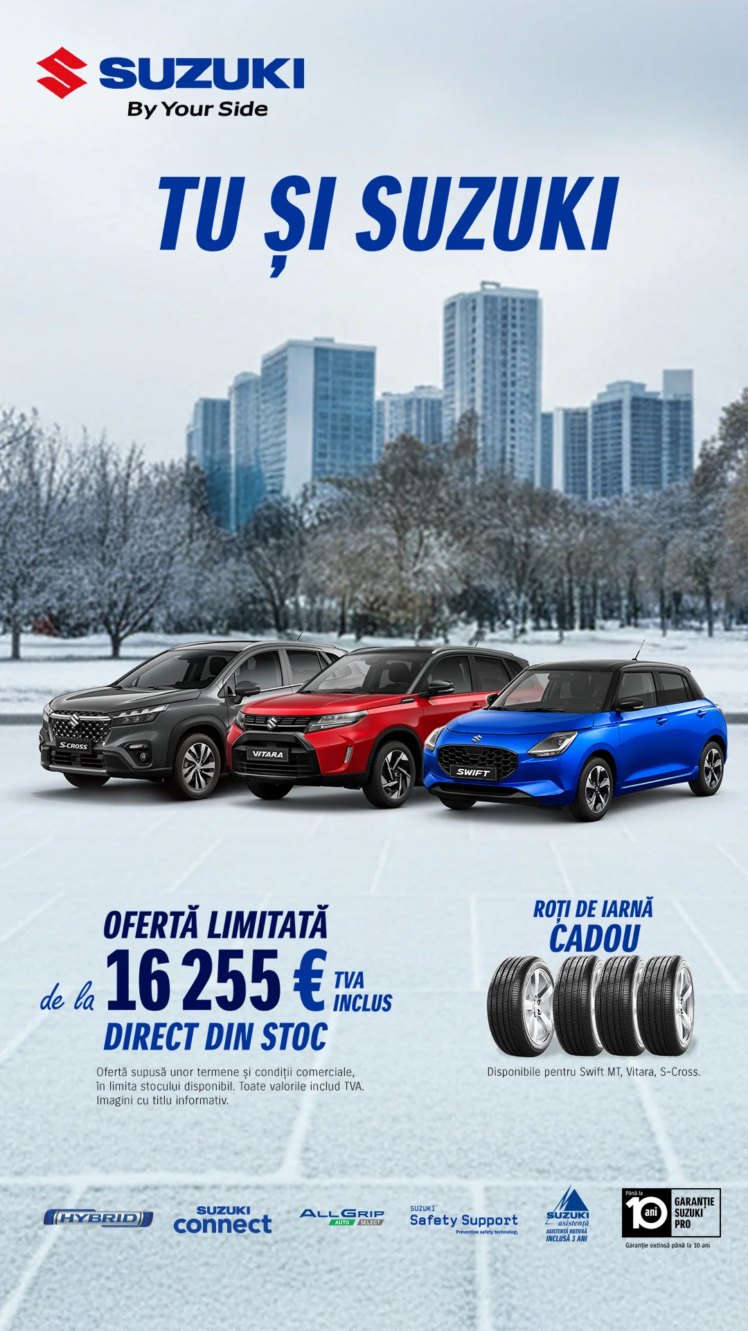 Oferim soluții de finanțare avantajoase pentru achiziția autovehiculelor SUZUKI, prin parteneriatul nostru cu Impuls Leasing. Pentru detalii contactează-ne.
